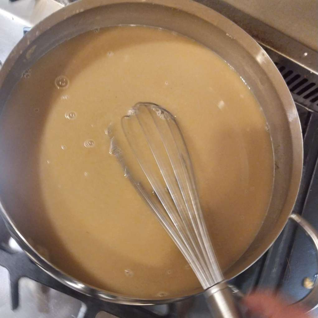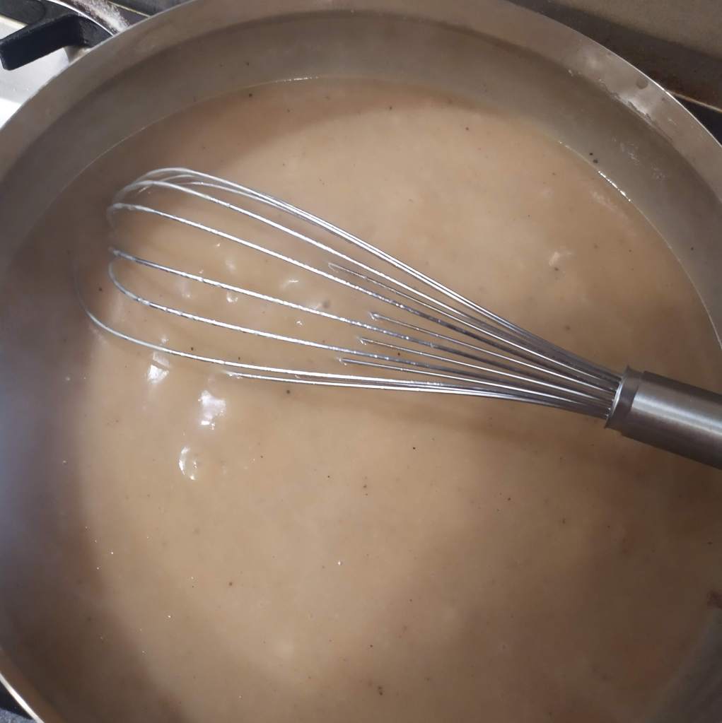 תמונה 6 - קמח עורבב בחמאה המומסת, ואז נוסף לשניהם ציר הבקר