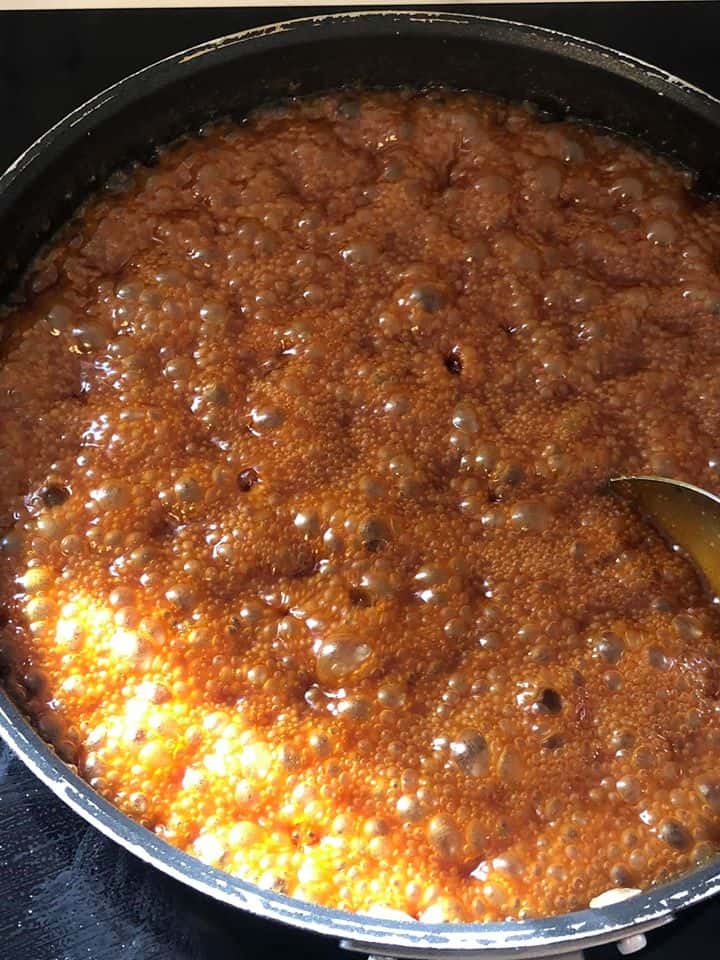 ממתינים עד שהסוכר מתקרמל כולו או כמעט כולו בלי לגעת או לערבב