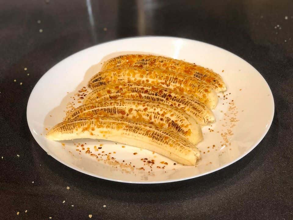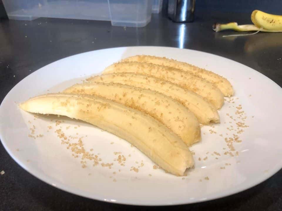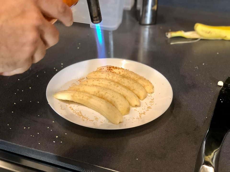 חוצים בננות באמצע, מפזרים סוכר דמררה(של סוגת😉) ומקרמלים עם ברנר