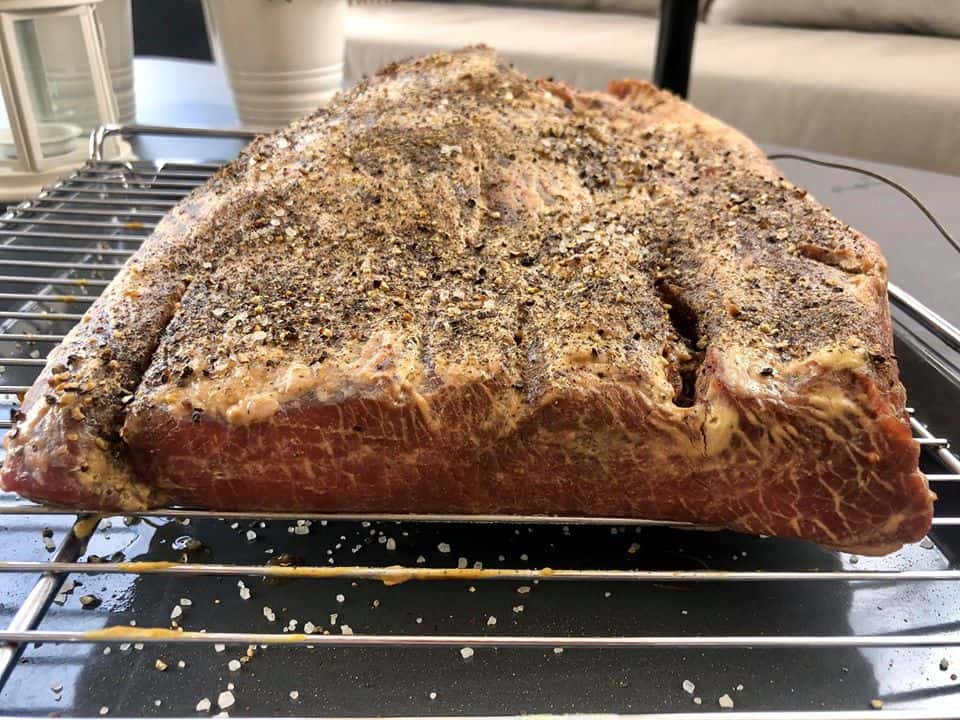 בריין יבש של כמה שעות עד יום וחצי(כף חרדל, מלח-פלפל ולמקרר מעל רשת)
