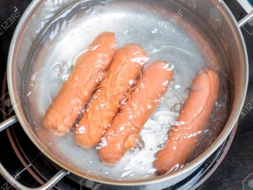 ניתן לעשן את הנקניקיות ולאחר מכן לבשל במים, העישון הוא עישון חם אך לא מעבר ל70 מעלות, יש לעשן את הנקניקיות עד לטמפרטורה פנימית של 60 מעלות, לאחר העישון נעביר את הנקניקיות לבישול במים, חשוב להתחיל את הבישול כאשר חום המים הוא בסביבות 50 מעלות עם עליה הדרגתית של טמפרטורת המים עד לחום של 70 מעלות וטמפרטורה פנימית של 68 מעלות. לאחר הבישול יש לקרר את הנקניקיות באמצעות מי קרח על מנת לעצור את הבישול ולמנוע קימוטים של המעטפת.
