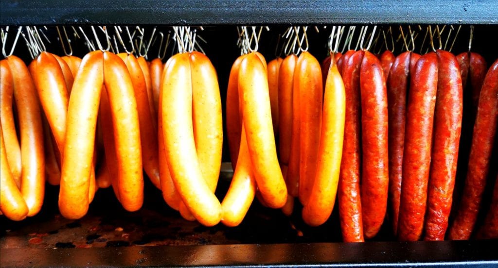 נקניקיות עגל אמולסיה מעושנות עם גבינת צ'דר.