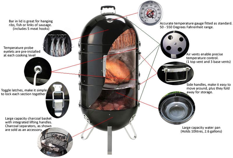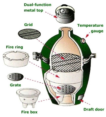 - תא פחמים נסתר מתא הבישול על מנת ששומן ונוזלים לא יטפטפו על הגחלים